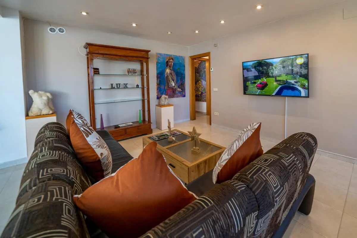 Diese Villa in unmittelbarer Nähe zum Strand verfügt über einen großen Garten mit Kinderspielplatz, Chill-out und Swimmingpool, ideal, um spektakuläre Sonnenuntergänge bei einem Barbecue-Abendessen zu genießen. Das Innere des Hauses besteht aus zwei großen Wohnzimmern, eines davon mit einem großartigen Fernseher (Netflix inklusive) und Highspeed-WLAN. Es gibt vier Schlafzimmer plus eine beeindruckende Suite mit Ankleidezimmer sowie drei Badezimmer (eines davon mit Whirlpool) und eine voll ausgestattete Küche mit Zugang zum Garten. Wenn Sie Ihren Aufenthalt zu einem außergewöhnlichen Erlebnis machen möchten, können wir Ihnen bei Lux Hoses Experience Optionen wie die Abfahrt mit einem privaten Boot, Katamaran oder mit einem Koch zu Hause anbieten.