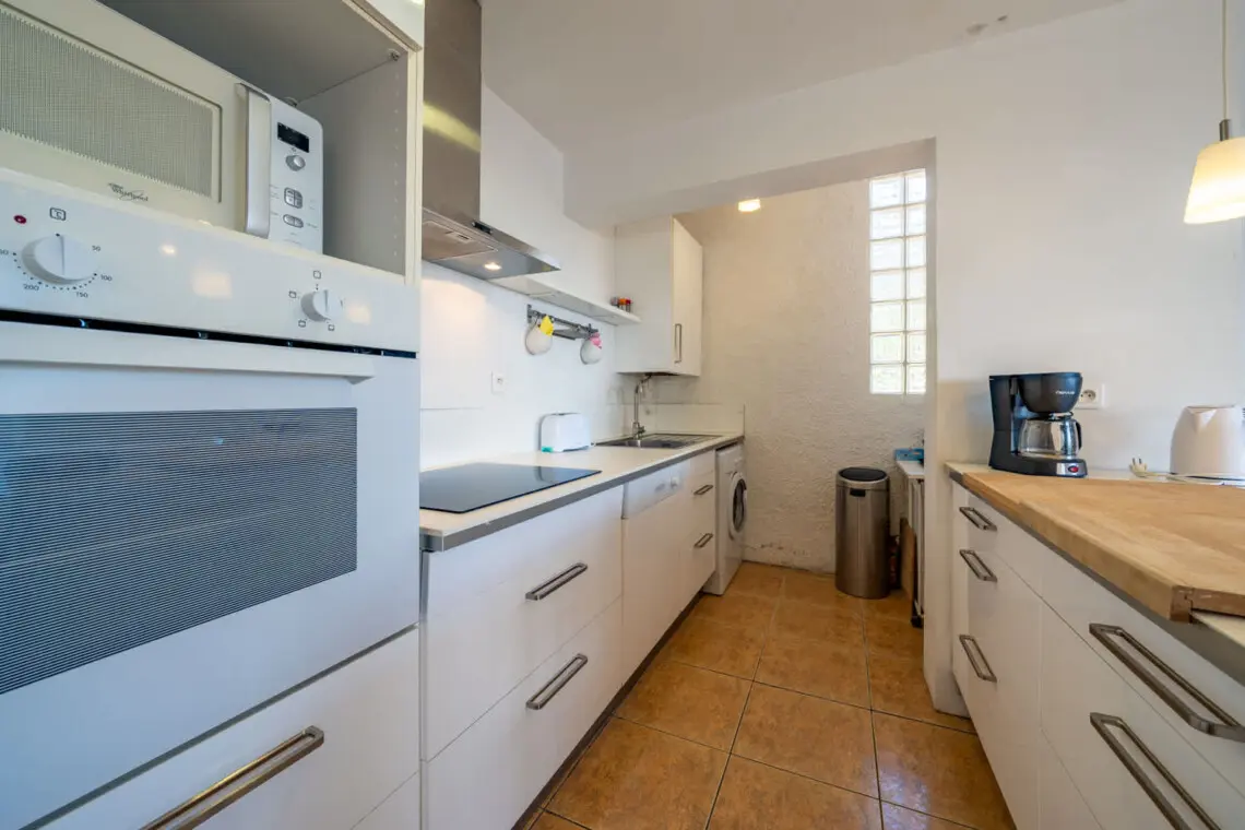 Cocina equipada: Práctica y luminosa, con todo lo necesario para que te sientas como en casa (horno, microondas, cafetera, lavavajillas, etc.).
