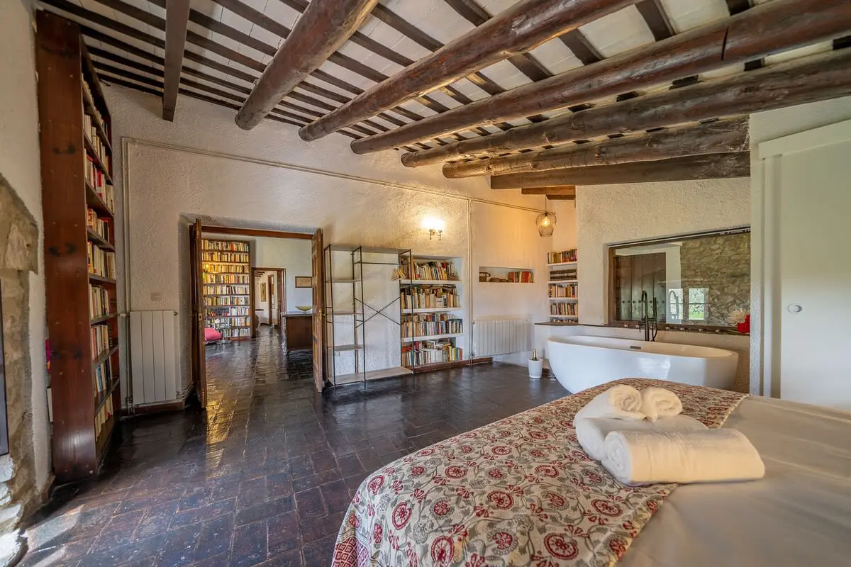Accommodating up to 14 people, the farmhouse offers a cosy lounge with a fireplace, a library, a lush garden with a swimming pool and a barbecue area. This magical place invites you to rest and relax, to enjoy with your family and to celebrate personalised events, where the beauty of the old blends harmoniously with the comfort of the contemporary.
