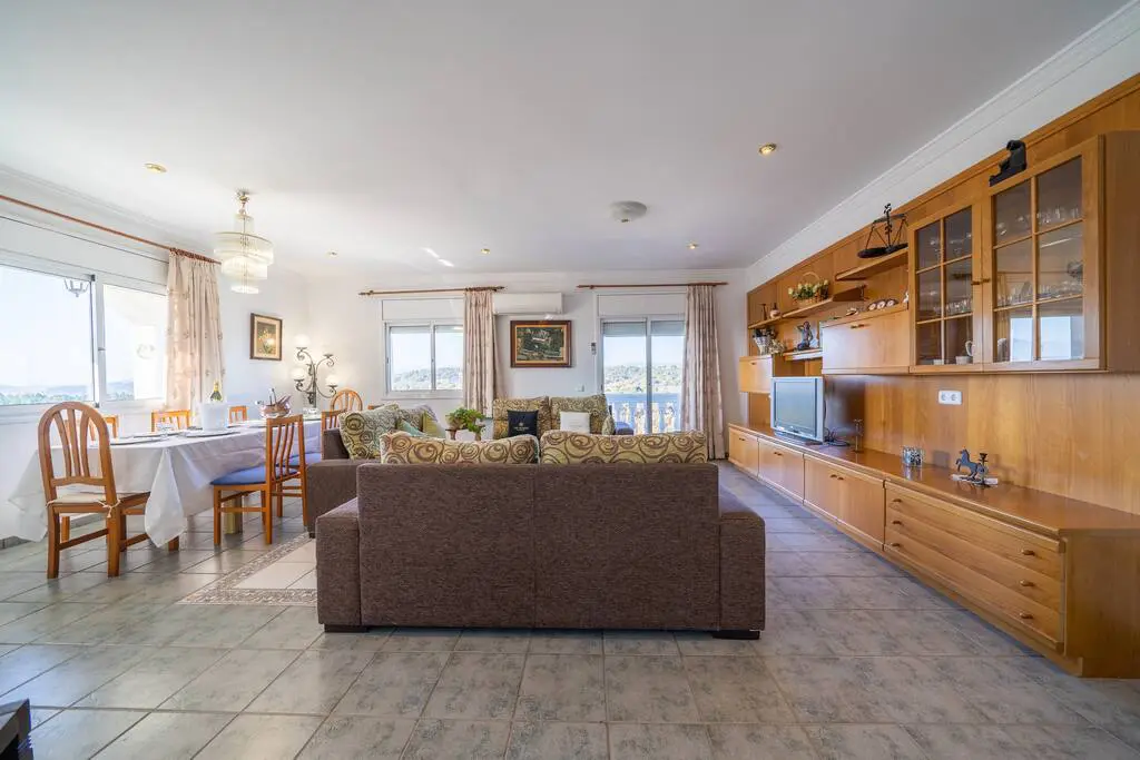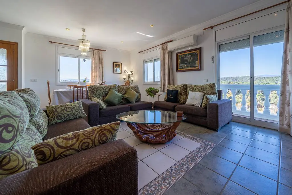 This beautiful villa offers stunning views in the middle of a natural environment and is located just 15 km from the beach. On its spacious outdoor grounds, you can enjoy an oasis of greenery with a generous swimming pool, designed with children’s safety in mind. The area around the pool is lushly landscaped and has sun loungers as well as a barbecue corner equipped with tables and chairs.