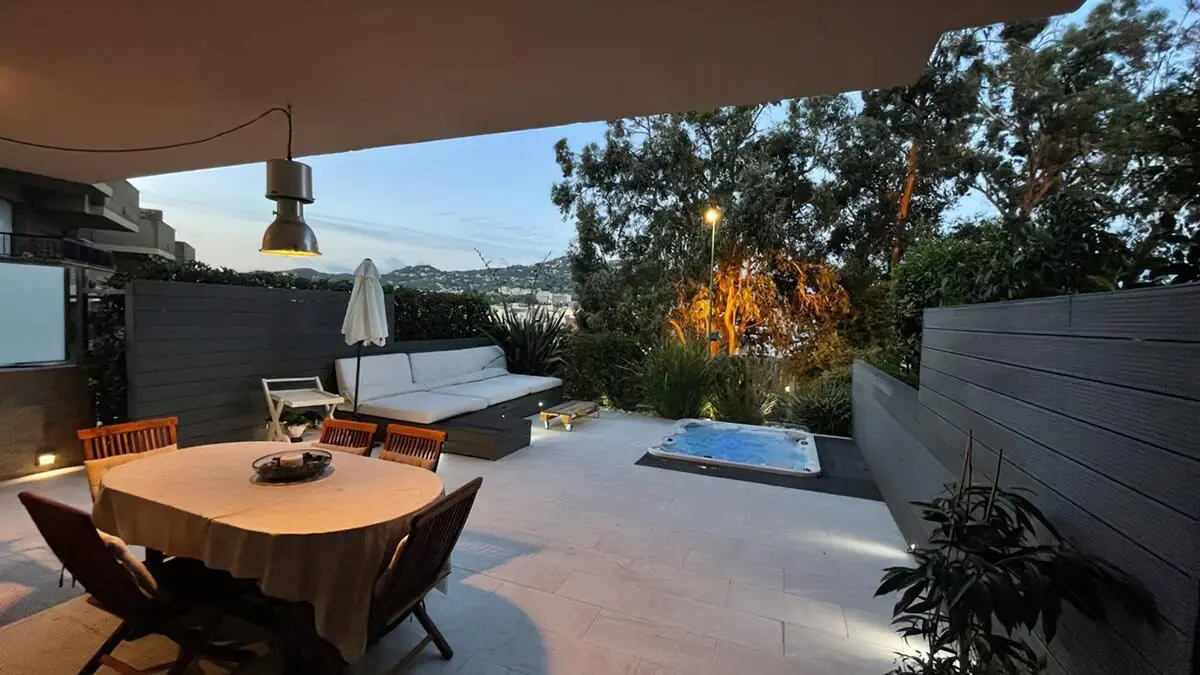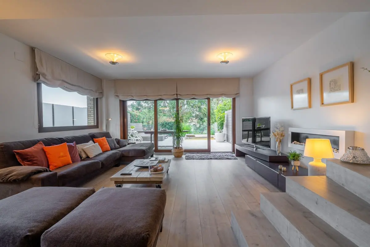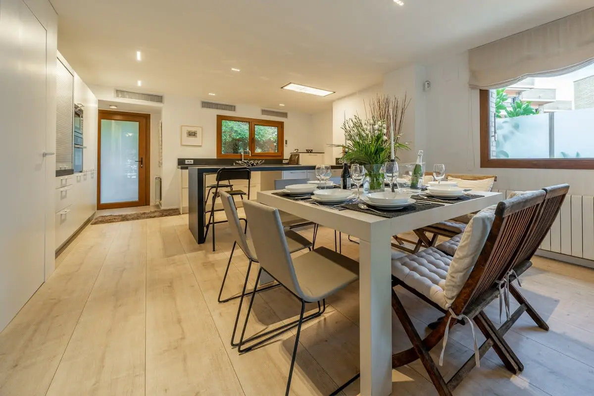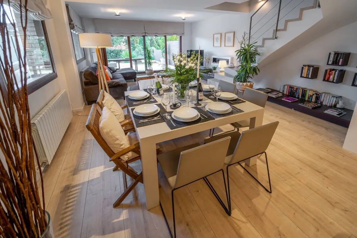 On the main floor we discover a large living room with dining area for 8 people, living area with Smart Tv and fully equipped kitchen, from the living room we go out to a large terrace, garden, chill out area and a great private jacuzzy that will make the nights in front of the sea unforgettable moments, we also have barbecue and dining area.